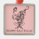 This square metal ornament features a bold illustration of Kali, the fierce Hindu goddess, alongside the words "Happy Kali Yuga!" against a light red background. A perfect blend of humor and black humor, this ornament playfully nods to the age of darkness known as the Kali Yuga—a time of chaos, transformation, and destruction before renewal. It’s a witty and unique decoration that brings a darker twist to the holiday season, making it a fun conversation starter for those with an appreciation for irony and the macabre.