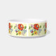 This is a heavy, durable bowl decorated with Tibbies of many colors, the perfect size for hungry/thirsty Tibs. The design is interesting and printing clear.