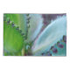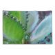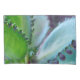 The original photograph by ZoeSPEAK on this Pillowcase Set is a semi-abstract closeup of a kalanchoe plant. The photo shows the leaves in different lighting, causing their normally bluish green color to appear yellow green and aqua blue. The sculptural new growth on the edges of the leaves, looking like jewelry on each leaf, appears dark green and deep teal blue.