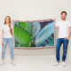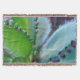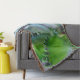 The original photograph by ZoeSPEAK on this Throw Blanket is a semi-abstract closeup of a kalanchoe plant. The photo shows the leaves in different lighting, causing their normally bluish green color to appear yellow green and aqua blue. The sculptural new growth on the edges of the leaves, looking like jewelry on each leaf, appears dark green and deep teal blue.