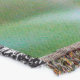 A quality printed throw has its advantages. This is a much finer weave throw than its loopier cousins, and though lighter, it is worth the investment for custom room accessorizing. The back is much prettier than the typical brown, and the fringe on the long sides very vivid, the selvage nicely done. Before photographing, I washed the throw in cold water, delicate, with a thicker woven throw the same size. On tumble dry low, this throw was dry in half the time as the other. This is a very practical quality if you use throws for furniture covers or to wrap up in frequently. The sleekness of the fabric makes it a great layer for accenting or protecting without the feeling of sitting on too much stuff. Perfect for napping or when you feel a light chill coming on. The color printing is beautiful and on this fabric, matched the design and color of my Photoshop image. This is an advantage for blending room fabrics and colors. The fringe on the short sides prints the colors from the design image and therefore varies from the side fringe. I streaked a white fractal line through the plaid pattern to give the illusion of weaving. This printed as crisp as an illusory thread, and put some white in the short side fringe, showing another advantage of print vs loomed- for artistic purposes, line lines, detail, and color integrity can be planned and preserved. My loomed throws have color limitations and more of a needlepoint texture. Print throws reproduce an exact image. The throw felt a little stiff straight out of the package, but this went away in the first delicate wash. Of course I searched the wash water for ink or bleeding and there was none.