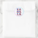 Kamala Harris American Flag Balloon Alphabets Cute Classic Round Sticker. Show your support for Kamala Harris with this stylish and trendy sticker. The design is a festive and patriotic theme created using USA flag balloon alphabets. This graphic aims to blend political significance with celebratory visuals, reflecting a sense of national pride and optimism. These letters are designed to mimic the appearance of helium balloons, adorned with the American flag's stars and stripes. The balloons have a 3D effect, with light reflections and shadows adding depth and a playful touch. The overall color palette combines deep reds, blues, and whites, harmonizing with the American flag’s colors. The design balances political gravitas with celebratory flair, using the USA flag balloon alphabets to create a visually engaging and uplifting image. It captures the essence of leadership and patriotism, offering a fresh and positive portrayal of Kamala Harris.