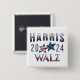 Democrat button in support of Kamala Harris and Tim Walz for president and vice president in 2024 US presidential election.