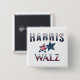 Democrat button in support of Kamala Harris and Tim Walz for president and vice president in 2024 US presidential election.