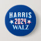 Democrat button in support of Kamala Harris and Tim Walz for president and vice president in 2024 US presidential election.