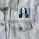 Democrat button in support of Kamala Harris. A cartoon caricature of Kamala.