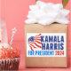 Kamala Harris for President 2024 Election stickers with waving American flag. Cute red, white, and blue design for a patriotic democrat voting in the presidential election.