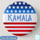 Kamala Harris Supporter Volunteer Fans Custom Text button. For a Kamala Harris presidential campaign supporter design, a bold and empowering layout that combines typography and patriotic symbols to create a striking visual statement. At the center of the design, feature Kamala Harris's name in large, elegant typography. Use a modern font to convey a sense of forward-thinking and progress. To enhance the design's visual appeal, add a subtle, polished finish with a shadow effect, giving the typography a sense of depth and dimension. This approach not only highlights Kamala Harris’s name but also ensures the flag’s colors and patterns stand out vibrantly. This product aims to celebrate Kamala Harris’s candidacy with a strong, patriotic flair, using typography and the U.S. flag to create a powerful, supportive statement for her presidential campaign.