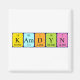 Kamdyn spelled out as K Am D Y N (Potassium Americium Deuterium Yttrium Nitrogen) on a magnet for the scientist in you.