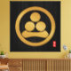 This is the family crest ( kamon ) of the WATANABE family . You may transfer this design to other products. Gold and wood print design.