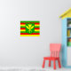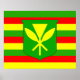 Kanaka Maoli, thought to be the original flag of the Kingdom of Hawaii. 8 stripes that represent the 8 islands of Hawaii. The center is a green shield, the coat of arms of Kanaka Maoli with the kahili, the royal Hawaiian standard.