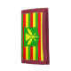Kanaka Maoli, thought to be the original flag of the Kingdom of Hawaii. 8 stripes that represent the 8 islands of Hawaii. The center is a green shield, the coat of arms of Kanaka Maoli with the kahili, the royal Hawaiian standard.