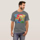My 11 yo wore adult XL (5’7” 165#). The 8yo is small framed. She wore adult small and tied it in the back. Grandma wore adult large with long sleeve shirt underneath. Tall girl adult medium. Dark haired male adult large. Good quality dark Heather gray, Gildan brand shirt. -it was next up from basic choice and cost about $20 per shirt. Not too thick or thin. Washed and dried well, no major shrinkage. Not see-through. Can wear a bra under it fine. Screen print is just as shown and well done, front and back.
