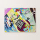 Kandinsky Black Grid puzzle. Oil painting on canvas from 1922. Wassily Kandinsky is regarded as one of the most innovative abstract artists of the twentieth century. Black Grid is a visually dynamic composition feauturing lively purples, yellows, and blues. Kandinsky’s characteristic sharp black lines surround a black grid at the center of the painting. A great gift for fans of Wassily Kandinsky, abstract painting, and Russian art.