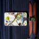 Kandinsky Blue Segment luggage tag. Oil on canvas from 1921. Russian painter Wassily Kandinsky was renowned for his gorgeous use of shape, color, and space. Blue segment is one of the artist’s most fascinating non-composition works. The painting features blues, yellows and oranges sprawling out roughly like his early cityscape paintings on a white background with hard black outlines. A pretty gift for fans of Kandinsky, abstract painting, and abstract art.