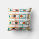 This throw pillow has a Kandinsky inspired mid-century modern design of sets of rectangles formed by a continuous line each with an oval inside in retro colors of orange, brown, gold, and turquoise on a white background. If you like the design but prefer different colors, message me.