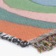 A quality printed throw has its advantages. This is a much finer weave throw than its loopier cousins, and though lighter, it is worth the investment for custom room accessorizing. The back is much prettier than the typical brown, and the fringe on the long sides very vivid, the selvage nicely done. Before photographing, I washed the throw in cold water, delicate, with a thicker woven throw the same size. On tumble dry low, this throw was dry in half the time as the other. This is a very practical quality if you use throws for furniture covers or to wrap up in frequently. The sleekness of the fabric makes it a great layer for accenting or protecting without the feeling of sitting on too much stuff. Perfect for napping or when you feel a light chill coming on. The color printing is beautiful and on this fabric, matched the design and color of my Photoshop image. This is an advantage for blending room fabrics and colors. The fringe on the short sides prints the colors from the design image and therefore varies from the side fringe. I streaked a white fractal line through the plaid pattern to give the illusion of weaving. This printed as crisp as an illusory thread, and put some white in the short side fringe, showing another advantage of print vs loomed- for artistic purposes, line lines, detail, and color integrity can be planned and preserved. My loomed throws have color limitations and more of a needlepoint texture. Print throws reproduce an exact image. The throw felt a little stiff straight out of the package, but this went away in the first delicate wash. Of course I searched the wash water for ink or bleeding and there was none.