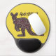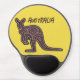 Gel mousepad features kangaroo silhouette in aboriginal mosaic pattern on yellow background with "Australia" in grunge style text