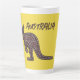 Latte mug features kangaroo silhouette in aboriginal mosaic pattern on yellow background with "Australia" in grunge style text