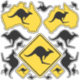 Diamond shaped warning sign. Australia map with kangaroo icon. Vector icons with customizable colors.