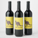 Australian kangaroo silhouette in tribal / ethnic mosaic pattern on yellow background. Customizable text