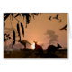 Kangaroos settle down for the night. Cockatoos fly overhead with a blazing sunset behind them. Computer art by Kathie Miller.