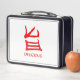 This is a standard metal lunchbox that appears to work just fine. We designed this box ourselves with an uploaded photo and custom text on the front and back. It looks absolutely beautiful except the front of the lunchbox is not centered like it shows in the photo. The print borders don't align with the inset flat part of the box where the preview photo online showed it perfectly centered in there. The back looks nice and centered though.