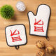 Kanji Delicious red white oven mitts pot holders Oven Mitt & Pot Holder Set