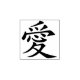 A graphic calligraphy kanji love symbol for a Chinese or Japanese American wedding invitation suite.