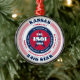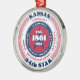 Show your state pride this holiday season with this unique Christmas ornament dedicated to Kansas, the 34th state. It has red, white, and blue patriotic colors with a circular typography design on a white background. The text includes facts about the state, such as its name, capital, state abbreviation, region, time zone, geographic coordinates, the year of its statehood, and its resident's name. It's a great gift for those who wish to celebrate their state or for those who are feeling nostalgic about their home state.