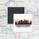 Square magnet features skyline silhouette of Kansas City, MO with map coordinates on a watercolor splash background,