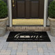 Show some home state pride with this custom doormat featuring "home" in tan calligraphy script lettering with a silhouette map of the state of Kansas standing in for the letter "O." A heart illustration inside the state map completes the design; you can change the position of the heart to your home city by opening the design tool and dragging the heart shape to your favorite spot. Personalize with your home city, family name and year established to create a perfect finishing touch for your front door, or a memorable housewarming gift.