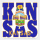 Patriotic Kansas state flag modern typography text letter design graphic in the colors of the states flag, add your name, text or town to some of the products using this design.