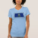 My overall review is that the T-shirt is nice, it fits true to size however the font is significantly smaller than advertised and you can't read it. The printing is unreadable and there is a strain to read it. It does not look like the advertised product. Maybe the shirt color is darker or a larger more visible font should have been used. Photos with and without flash and font is barely legible.
