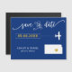 You chose a special place for your wedding. Now it's time to celebrate it with this keepsake save the date magnet card, featuring a silhouette map and a tiny plane headed to your destination. To move the heart to the place of your wedding, click personalize and then "customize further."