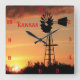 Kansas Windmill Silhouette Sunset Square Wall Clock