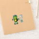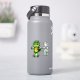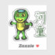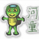 This cute sticker has Japanese calligraphy for the word 河童. It means kappa. Kappa are a type of youkai that resemble a turtle. Youkai are Japanese sprits known in Japanese folklore to do all sorts of mischievous things. Kappas live in the water and are known for their love of cucumbers. They appear in much Japanese media, including anime.