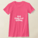The material is a great quality that is hard to find with most tee shirts. Fabric was not see-through or thin at all, but was also very soft and comfortable. The shirt description states that it runs a little small, so I sized up one size for a perfect fit! I would definitely buy this type of tee shirt again because I love the fit and high quality fabric that I cannot find anywhere else. The printing was perfect and just as pictured. Loved the cute quote and really enjoy the tee in both the quality and design. I love quirky typography designs and funny quotes and I am extremely pleased with the overall quality and value I get at Zazzle!