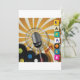 A design for a karaoke party with a microphone on a colourful background. This design looks really effective on these Invitations