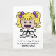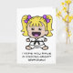 Cute card celebrates a birthday in a kicking fun way. It features a cute cartoon girl wearing a black karate belt. You can customize the text on the front and inside.