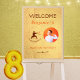 The strength of martial arts represented in a modern karate silhouette, designed on gold background symbolizing the gold medals of karate champion. Use this Welcome Sign as part of the birthday total decoration and personalize the name, age, date and photo of your child.