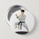 Strike an awesome karate pose just like this one. This person is in there karate outfit and they are in a karate pose. This karate person is wearing a black belt. This karate pose design looks great on this button. Perfect for yourself or as a gift