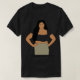 My 11 yo wore adult XL (5’7” 165#). The 8yo is small framed. She wore adult small and tied it in the back. Grandma wore adult large with long sleeve shirt underneath. Tall girl adult medium. Dark haired male adult large. Good quality dark Heather gray, Gildan brand shirt. -it was next up from basic choice and cost about $20 per shirt. Not too thick or thin. Washed and dried well, no major shrinkage. Not see-through. Can wear a bra under it fine. Screen print is just as shown and well done, front and back.