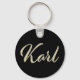Ein sehr schöner edler personalisierter Button Schlüsselanhänger im whitegold Lettering Look auf schwarz für Karl.