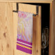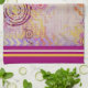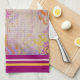 16” x 24” kitchen towel with an image of an intricate design with purple, pink, orange, and yellow circles, dots, and arrows. Plum, tan and yellow stripe borders. See matching cloth napkin, paper cocktail napkin, cloth placemat, paper placemat and coasters. See the entire Enlightenment Kitchen Towel collection in the FOOD/BEV | Linens section.