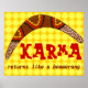 The statement "Karma returns like a boomerang" with an image of a boomerang with Aboriginal style decoration