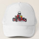 Go Karting design shows helmet wearing kart racer driving racing kart with high speed concentration. For karting and go kart enthusiasts.