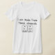 My overall review is that the T-shirt is nice, it fits true to size however the font is significantly smaller than advertised and you can't read it. The printing is unreadable and there is a strain to read it. It does not look like the advertised product. Maybe the shirt color is darker or a larger more visible font should have been used. Photos with and without flash and font is barely legible.