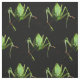 This fun animal fabric design features a lively katydid. Katydids are medium-sized to large insects. They are usually green, sometimes with brown markings, and are camouflaged to blend with the leaves they feed on. Their very long antennae distinguish them from grasshoppers. Seen up close, they seem to be aliens from outer space! Easily customize the black background to any color that will suit your special project.