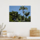 Beautiful blue sky with palm trees waving in the gentle ocean breeze in Kauai, Hawaii. Beautiful poster or print for the home or office.